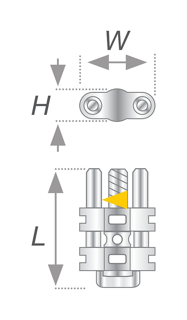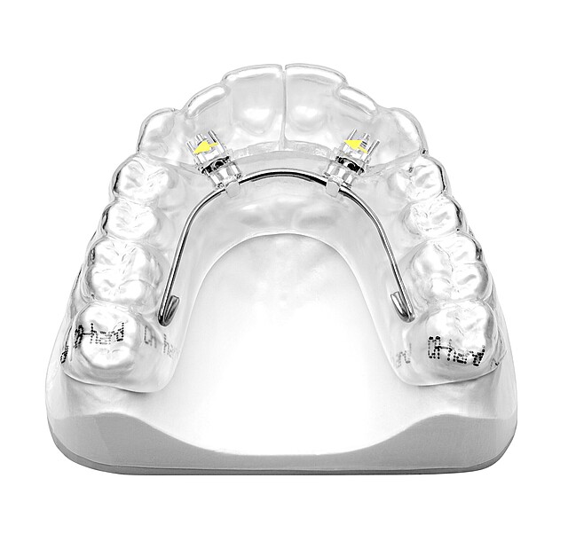 Special miniaturised sector screw with bright yellow directional arrow for single tooth movements. To ensure safe anchorage, retention wires (CHROMIUM Ø 0.8 mm, not included) can be individually inserted and adjusted. Can also be used in the CA® CLEAR ALIGNER technology for oblique-lateral segment expansion acc. to Dr. Pablo Echarri in conjunction with the CA® Arch CHROMIUM and two VECTOR® 30 screws.