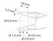 Schlaufen- und Bogenbiegezange mit mehrfach gekerbten Spitzen, geeignet für Labialbögen und harte Drähte (Ø bis 0,9 mm).