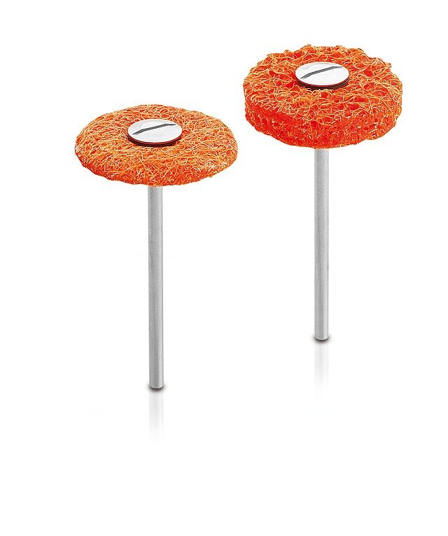 Ausarbeitungsscheibe aus einer speziellen Elastomermischung mit feiner Faserstruktur, extrem lange Standzeit, inkl. Mandrell. Scheiben vor Gebrauch mit einem Abziehstein in Form bringen.