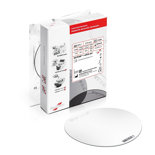 Spannen Sie die Folie bei den SCHEU-DENTAL Tiefziehgeräten so ein, dass die Bedruckung der eingespannten Folie von oben lesbar ist. Bei anderen Geräten überprüfen Sie bitte das jeweilige Heizsystem, denn ggf. wird die Folie nach dem Beheizen nicht mehr geschwenkt. Bei nicht bedruckten/codierten Folien spielt es keine Rolle, wie Sie die Folie einspannen.
